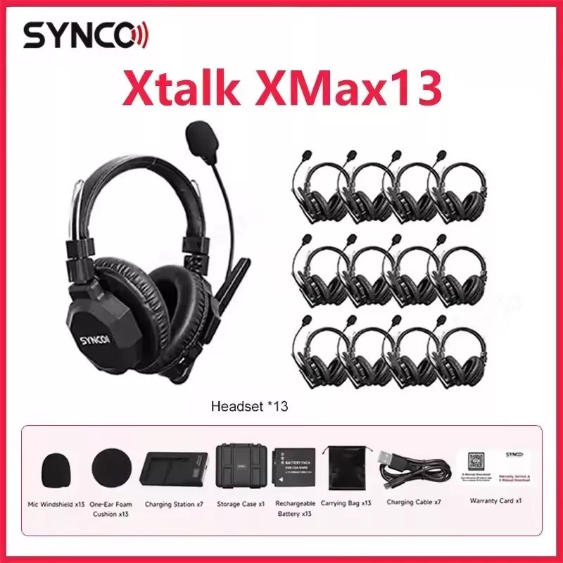 The Synco Xtalk Max 13 is a full-duplex wireless intercom system engineered to provide clear communication in a comfortable true-wireless design with no body pack or hub required. This configuration includes 9 rugged, single-ear headsets, and Synco’s Master free algorithm conveniently allows you to use any of the headsets as the master. In addition, the package provides 9 rechargeable batteries, 5 battery charging stations, 5 USB charging cables, 9 windscreens, 9 single-ear foam cushions, and a case for transport and storage. The system uses 2.4 GHz technology to ensure clear and reliable transmission at a range of up to 1148’—making it well suited for a variety of applications, including film and video productions and event coordination for businesses, schools, and houses of worship.